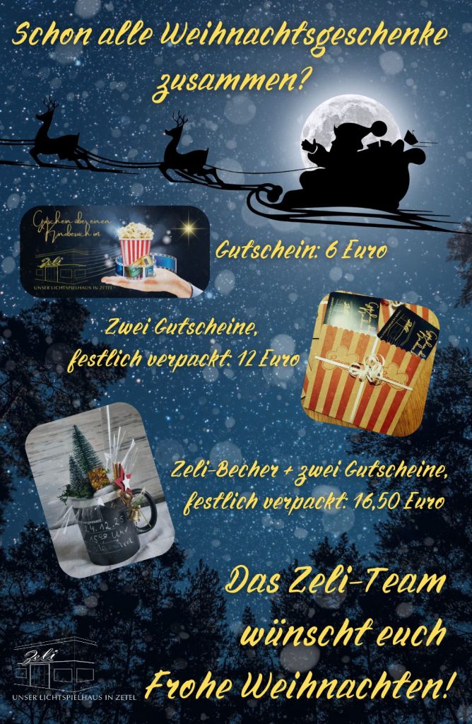 habt ihr schon alle Weihnachtsgeschenke zusammen? Oder plant ihr, euch erst in den kommenden Tagen in den Weihnachtstrubel zu stürzen? Im letzten Fall haben wir eine Alternative für euch. Wichtig: Im Online-Shop gibt es nur die ganz normalen Gutscheine. Alles festlich Verpackte bekommt ihr ausschließlich an der Kinokasse. Worauf wartet ihr also noch?
